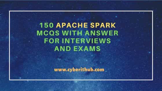 In this article, we will see 150 Apache Spark MCQs with Answer for Interviews and Exams. Apache Spark is an open-source, distributed computing system that offers a fast and general-purpose cluster-computing framework. Originally developed at the University of California, Berkeley's AMPLab, Spark was later donated to the Apache Software Foundation, where it has become one of its most active projects. Spark provides an interface for programming entire clusters with implicit data parallelism and fault tolerance. Here we are going to look into 150 MCQs with answer on various topics including Spark's core concepts, architecture, RDDs, DataFrames, Datasets, Spark SQL, Spark Streaming, MLlib, GraphX, cluster management, performance optimization, and best practices.