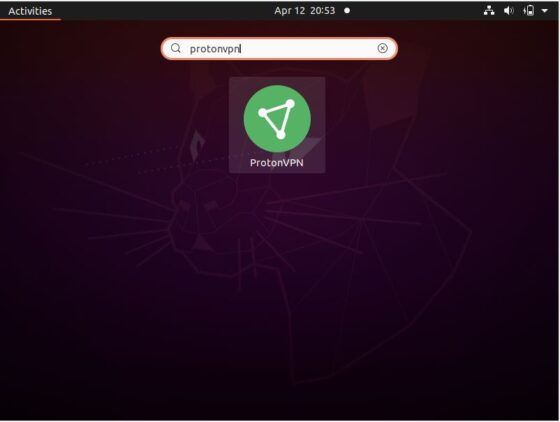 To start ProtonVPN, go to Activities and search for protonvpn in the Search box. Once it shows up, Click on it to open.