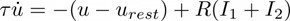 self.u += self.h*(-self.u + self.urest + self.R*(I1 + I2))/self.tau